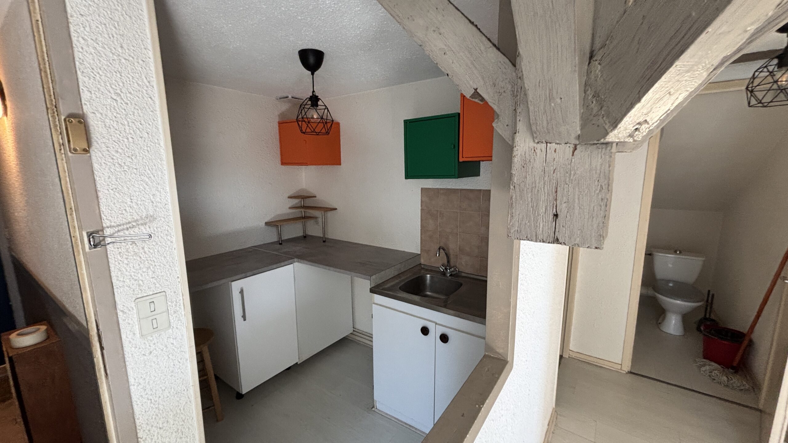 Appartement comprenant : séjour et un coin cuisine, chambre, salle de bain et un wc séparée.